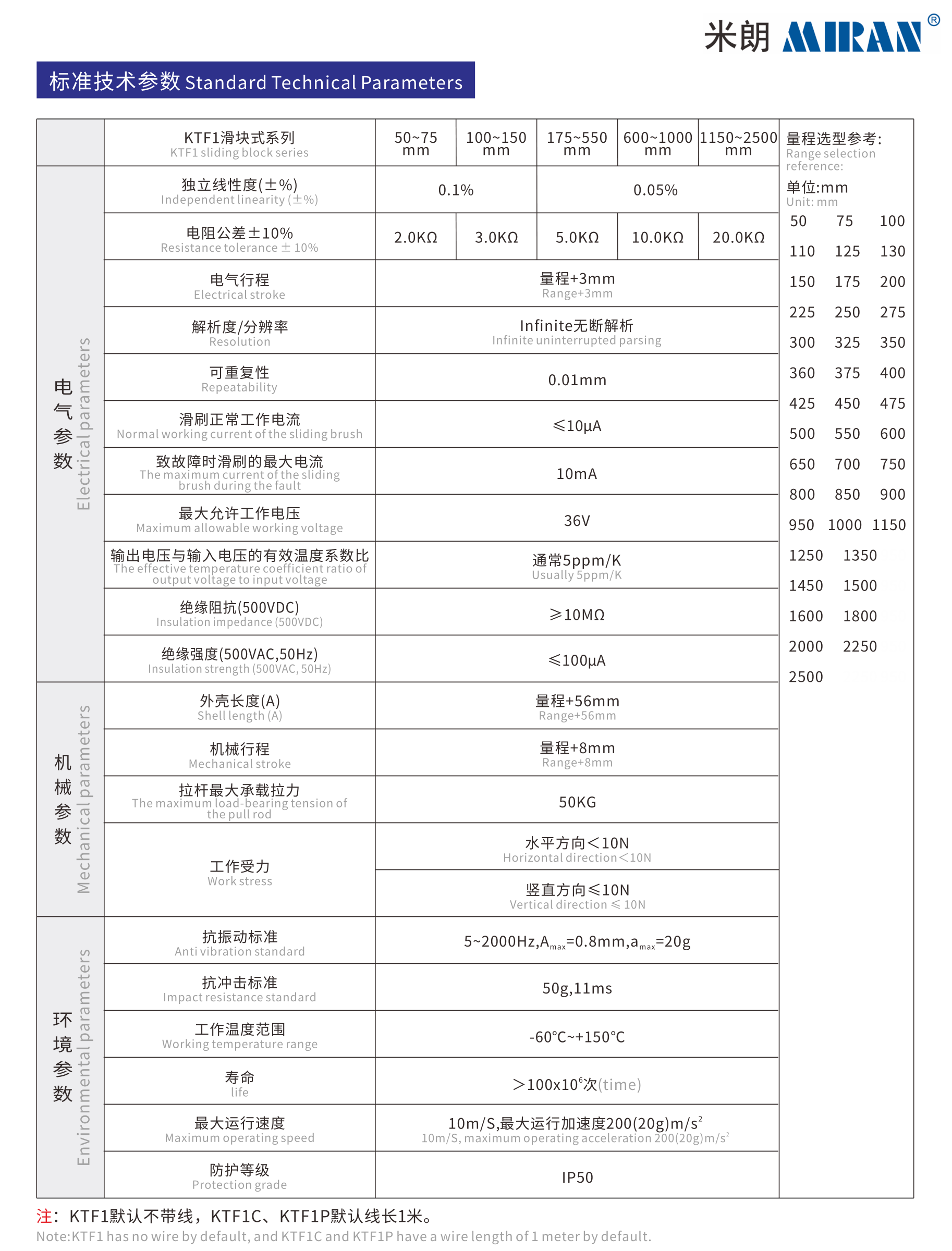 KTF1 slider type electronic ruler (alias: resistance ruler, potentiometer, displacement sensor) Principle: Potentiometer principle, all sensors are position measurement type, used in the adjustment system (control system) and measurement system, to directly measure the displacement and length, output DC voltage signal, can also be converted into the standard 0-5V, 0-10V or 4-20mA DC signal through the built-in or external V/A converter module. Can also be remote transmission control requirements. KTF1 slider electronic ruler (alias: resistance ruler, potentiometer, displacement sensor) output displacement variation: 0-100% given input operating voltage (with displacement variation).