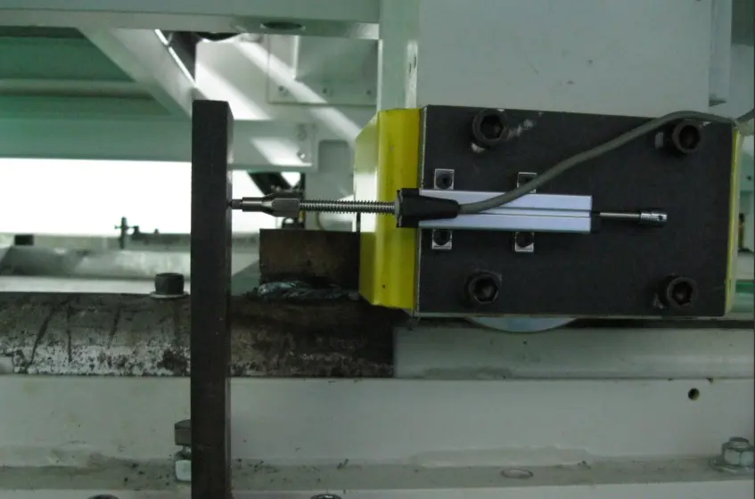 The following figure shows an application case of the Miran KTR self-resetting displacement sensor installed in the cast film machine