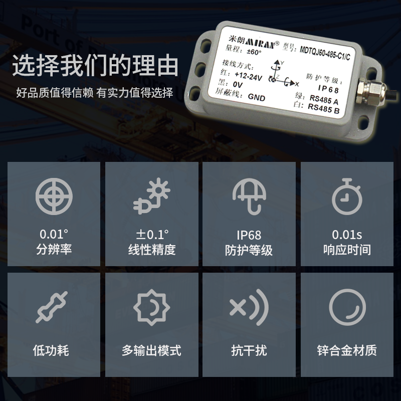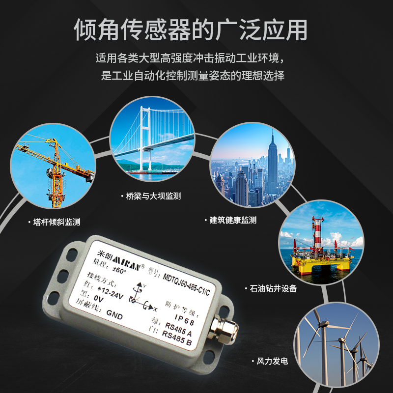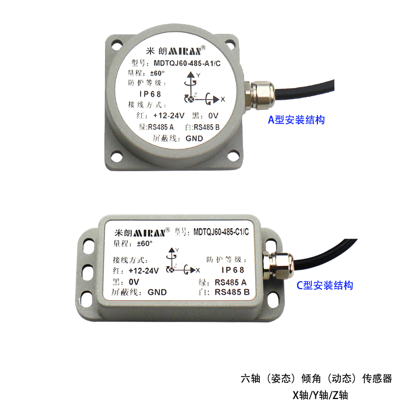 特别值得一提的是,米朗科技最新推出的六轴动态倾角传感器,其采用非接触式测量,能实时输出当前的姿态倾角,使用简单,内部集成精度高的AD以及陀螺单元,可实时对非线性、正交耦合、温漂及离心加速度进行补偿,可以大大消除运动加速度干扰产生的离心误差,提高产品动态测量精度,可长期适应在复杂运动场景及恶劣环境中工作。该产品属于动静双模测量传感器,抗外界电磁干扰能力强,适用各类大型高强度冲击振动工业环境,是工业自动化控制测量姿态的理想选择。