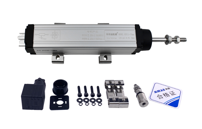 KTC11拉杆式直线位移传感器(别名:电子尺,电阻尺,电位器,位移传感器)原理:电位计原理,所有传感器为位置测量型,用于调节系统(控制系统)和测量系统中,对位移和长度进行直接测量,输出直流电压信号,也可以通过内置或者外置的V/A变送模块将信号转换成标准的0-5V、0-10V或者4-20mA直流信号,也可以远距离传输控制要求。KTC11拉杆式直线位移传感器(别名:电子尺,电阻尺,电位器,位移传感器)输出位移变化:0-100%给定输入工作电压(随位移变化而变化)。